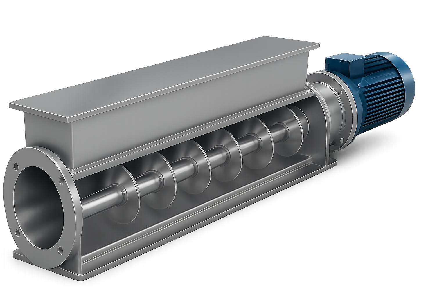 A Screw Conveyor is an efficient mechanical system used to transport bulk materials horizontally or at an incline using a rotating helical screw blade inside a trough or tube. It provides uniform and controlled material flow, making it ideal for handling powders, granules, and semi-solid materials in enclosed conditions. Structure & Drive The system consists of a helical screw blade (flight) mounted on a rotating shaft enclosed in a tubular or U-shaped casing. The drive system includes an electric motor and gearbox that rotate the screw, propelling materials along the trough while preventing spillage and contamination. Key Features Enclosed design prevents dust and contamination Handles powders, grains, and semi-solid materials Customizable length, pitch, and diameter Simple, reliable, and low-maintenance operation Can be horizontal, inclined, or vertical Typical Applications Used in food, chemical, cement, fertilizer, and pharmaceutical industries for transporting dry bulk materials such as flour, sand, cement, or granules. Tesseract Systems Expertise At Tesseract Systems, we design and manufacture Screw Conveyors with precision-engineered components for maximum efficiency and durability. Our conveyors are tailored for your material type and process requirements, ensuring consistent feeding and smooth operation in every industrial environment. ENQUIRY NOW →